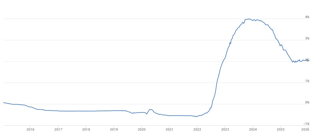 Ce taux est publié quotidiennement et constitue une référence clé pour de nombreux produits financiers, comme les prêts, les hypothèques et les produits dérivés. L’EURIBOR 3 mois se situe à 2.033% au 16/01/2026.