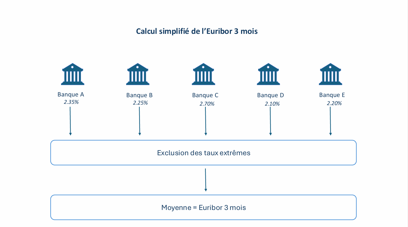 Le résultat publié constitue l’Euribor 3 mois du jour. Ce mécanisme permet d’obtenir un taux représentatif des conditions de financement interbancaire.